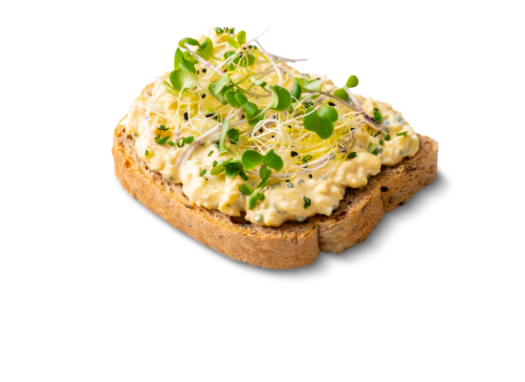 Chlebík s vajíčkovou pomazánkou je poctivá snídaně nebo svačina, která zasytí i potěší. Vícezrnný chléb naší vlastní výroby se semínky a křupavou kůrkou doplňuje krémová pomazánka z vařených vajec, jemné majonézy a dijonské hořčice. Ideální volba pro rychlé a opravdu chutné občerstvení.